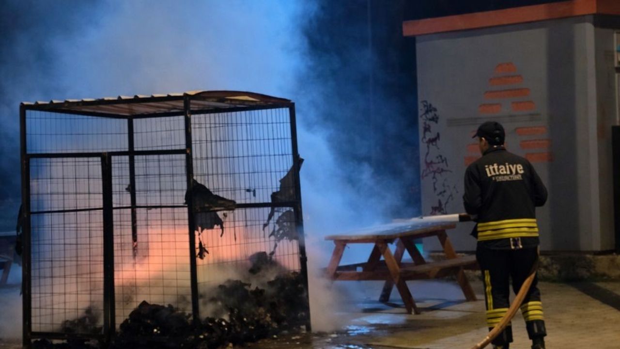 Tekirdağ'da Cumhuriyet İlkokulu karşısında bulunan geri dönüşüm konteynerinde yangın çıktı.