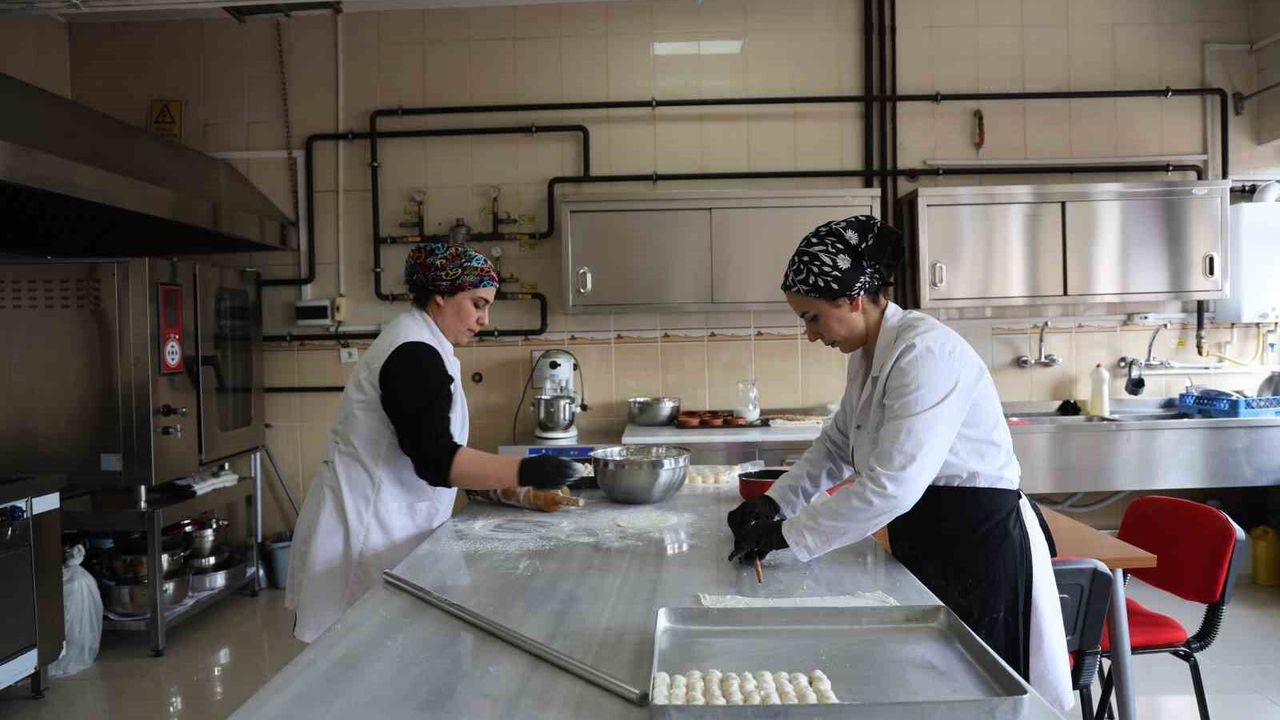 Diyarbakır Olgunlaşma Enstitüsü yiyecek içecek bölümünde Ramazan Bayramı için alınan tatlı ve çörek siparişleri, doğal malzemeler kullanılarak hazırlanıyor.