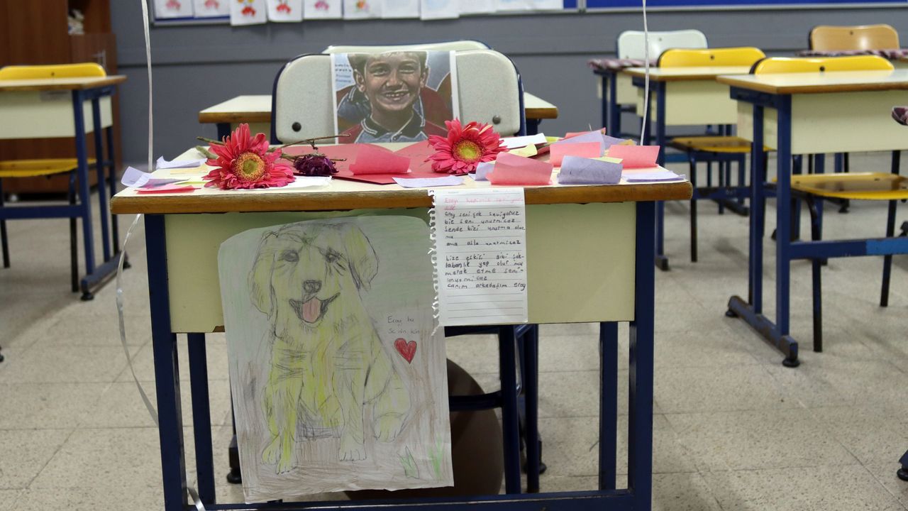 Prof. Dr. Necmettin Polvan İlkokulu 4. sınıf öğrencisi Eray Tombul'un sırasına arkadaşları tarafından fotoğrafı bırakıldı.