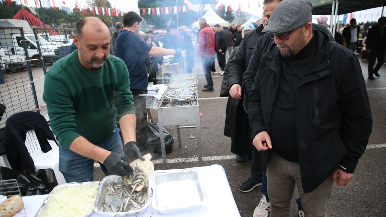 İlçe sahilinde ızgaralarda pişirilen 7 ton hamsi, katılımcılara dağıtıldı.