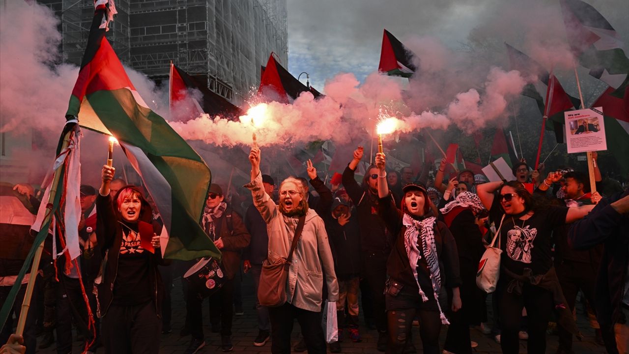 OSLO (AA) - 2026 Dünya Kupası Avrupa Elemeleri'nde oynanacak Norveç-İsrail maçı öncesi başkent Oslo'da binlerce kişi, İsrail'i protesto etti.