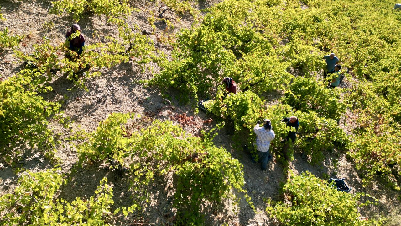 İlçeye bağlı 1100 rakımlı Kaman köyünde çiftçiler, bağ bozumunun ardından üzümlerini taştan oyulmuş havuzlarda topluyor.