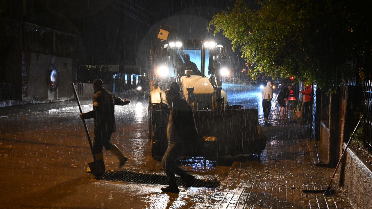Belediye ekipleri, sağanağın yol açtığı olumsuzlukları gidermek için çalışmalarını sürdürüyor.