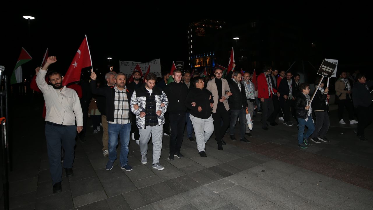 İnsan Hak ve Hürriyetleri (İHH) İnsani Yardım Vakfı Bursa Şubesi'nin organizasyonunda 15 Temmuz Demokrasi Meydanı'nda toplanan çok sayıda kişi, İsrail aleyhine slogan atarak, filoya yapılan saldırılara tepkisini ortaya koydu.