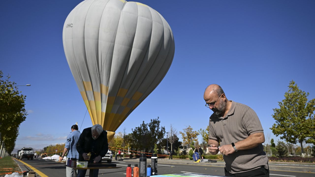 ANKARA (AA) - Başkentte ressamlar, 29 Ekim Cumhuriyet Bayramı kutlamaları kapsamında, Cumhurbaşkanlığı Külliyesi önünde düzenlenen sıcak hava balonu etkinliğini resmetti.