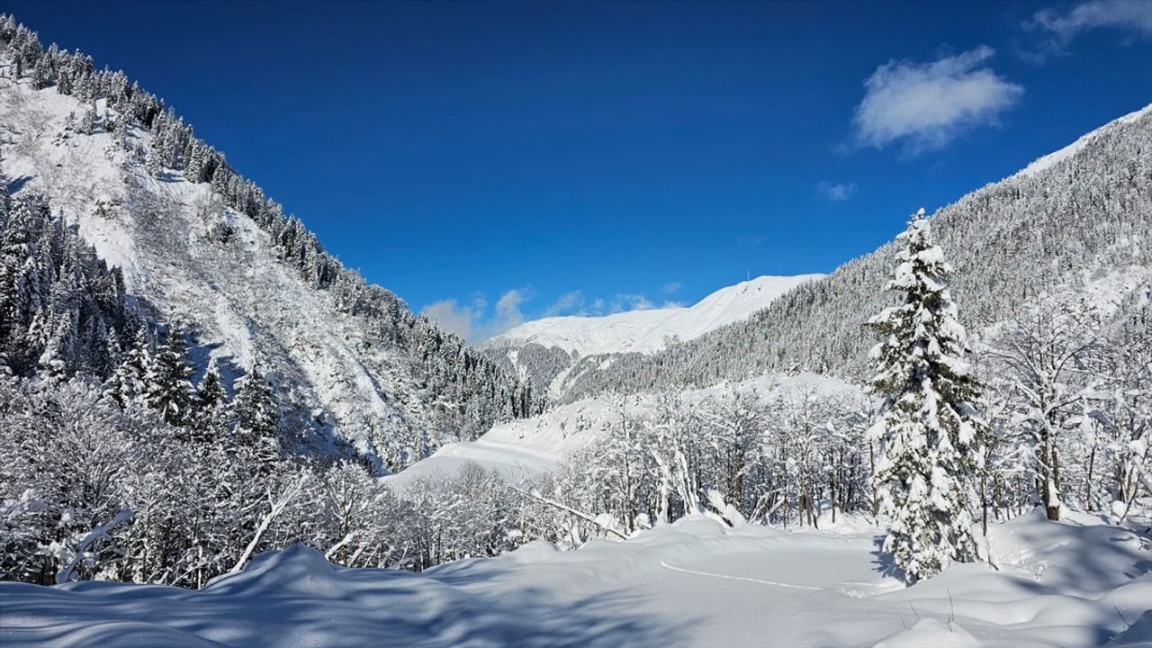 Beyaza bürünen Galerdüzü Yaylası ve Kaçkar Dağları'nın eteklerinde oluşan seyrine doyumsuz kar manzarası dronla kaydedildi.