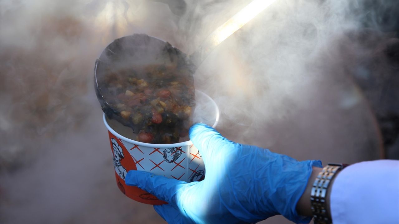Etkinlikte, dev kazanda pişirilen 500 kişilik karalahana çorbası, katılımcıların beğenisine sunuldu.