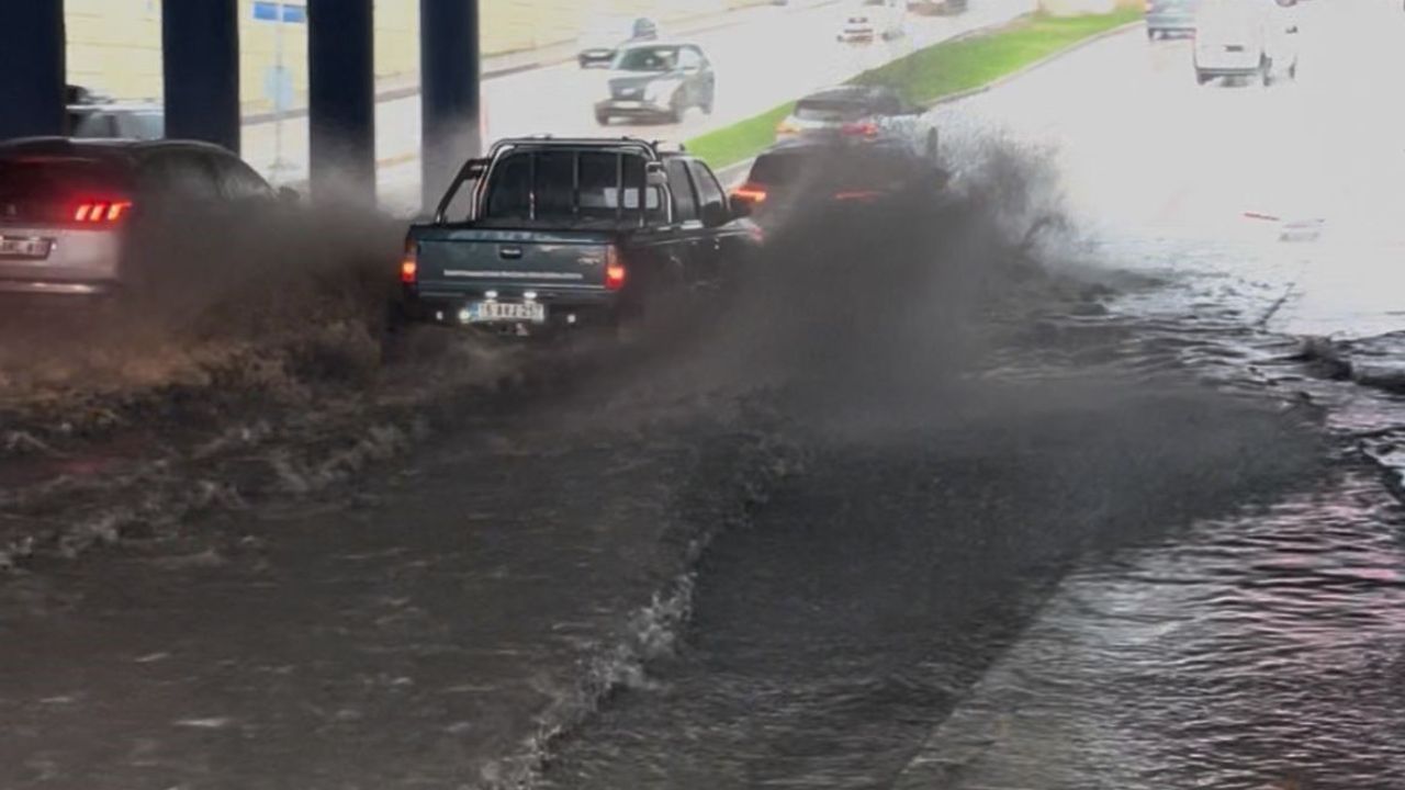 Bursa'da bir süredir devam eden lodos, yerini sağanak yağışa bıraktı. Yoğun yağışın ardından alt geçitte biriken sular, zaman zaman araç trafiğinin yoğun olduğu kavşakta ulaşımı olumsuz etkiledi. Su seviyesinin yükselmesiyle birlikte sular kaldırımlara kadar taştı.