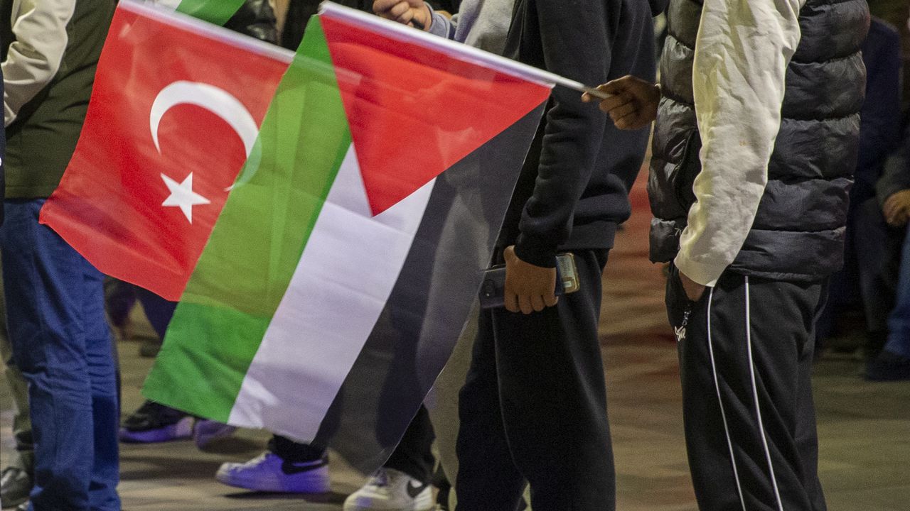 Katılımcılar, ellerinde Türk ve Filistin bayrakları ile çeşitli pankartlar taşıdı.