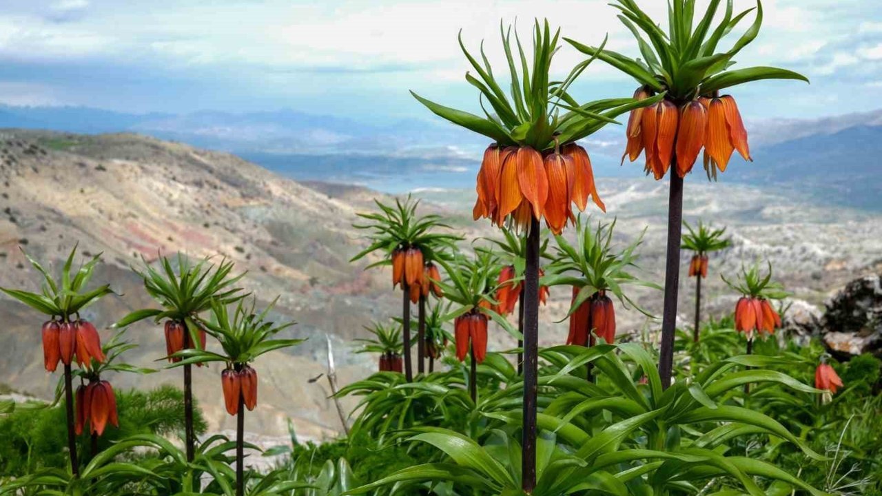 Diyarbakır'ın Ergani ilçesindeki Sakız Dağı'nda kayalıklar arasında açan ters laleler, baharda görsel bir şölen oluşturuyor.