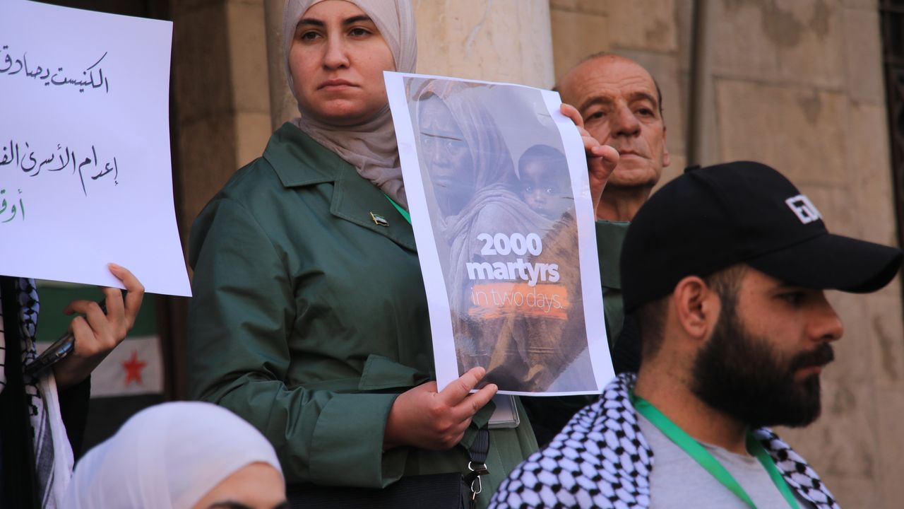 Şam'ın Hicaz Meydanı'nda toplanan göstericiler, Arapça 'Gazze'yi yalnız bırakmayın, savaş hala bitmedi', 'Gazze'deki soykırımı destekleyenleri boykot edin', 'Suriye'den Sudan'a, kalbimiz sizinle', 'Sudan'da acıdan başka bir şey yok' yazılı dövizler taşıdı.