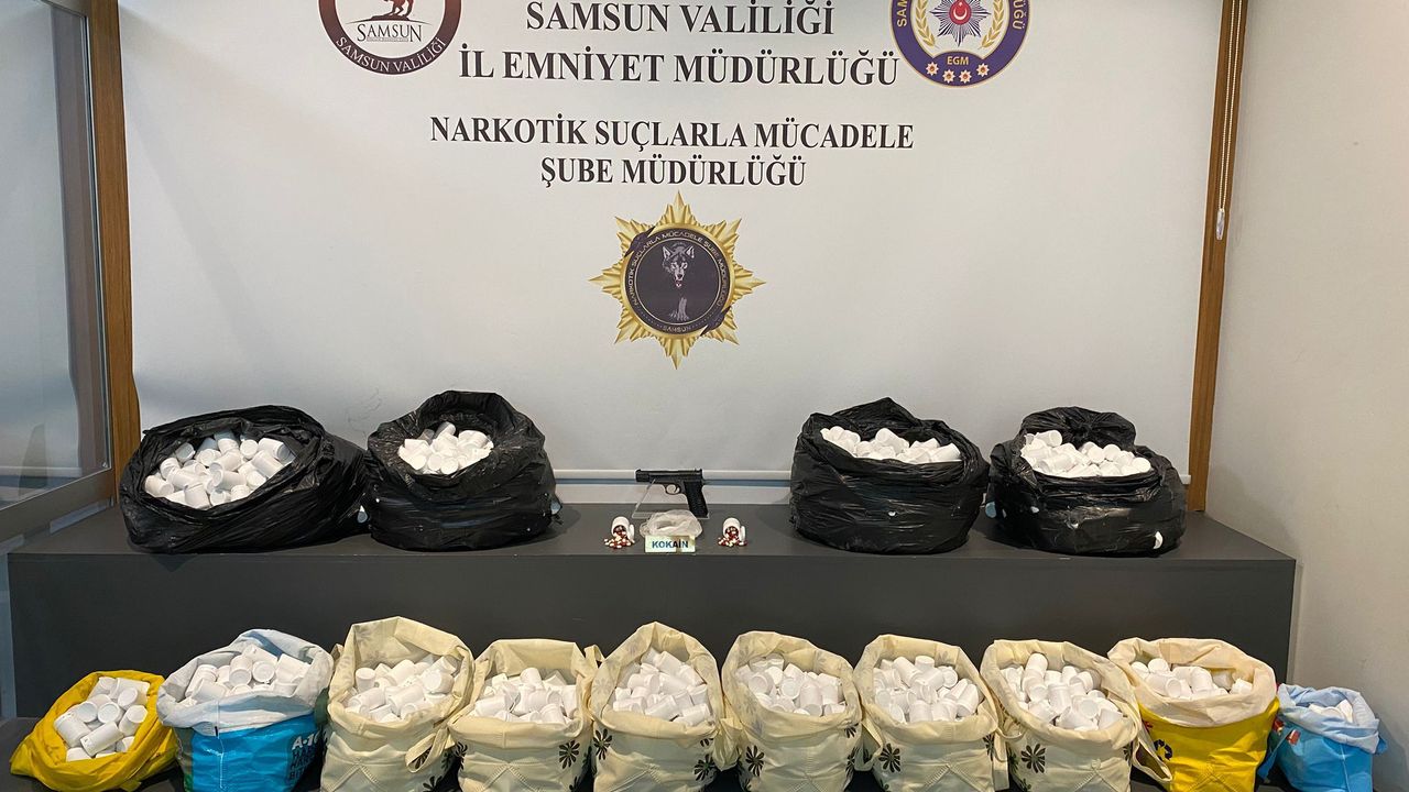 SAMSUN (AA) - Samsun'un Atakum ilçesinde düzenlenen operasyonda 105 bin 279 uyuşturucu hap ele geçirildi, 5 şüpheli gözaltına alındı.
