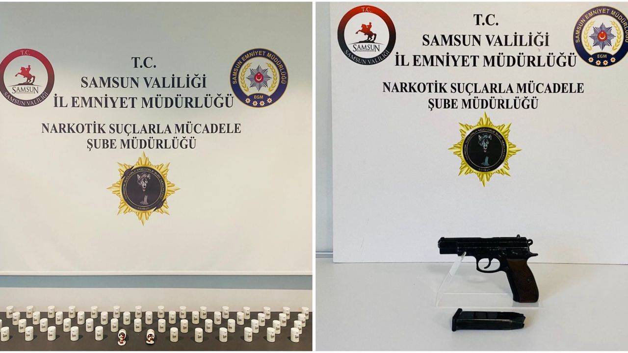 Şüphelilere ait ikamet ve araçlarında yapılan aramada, 3 bin 360 uyuşturucu hap ile ruhsatsız tabanca ele geçirildi.