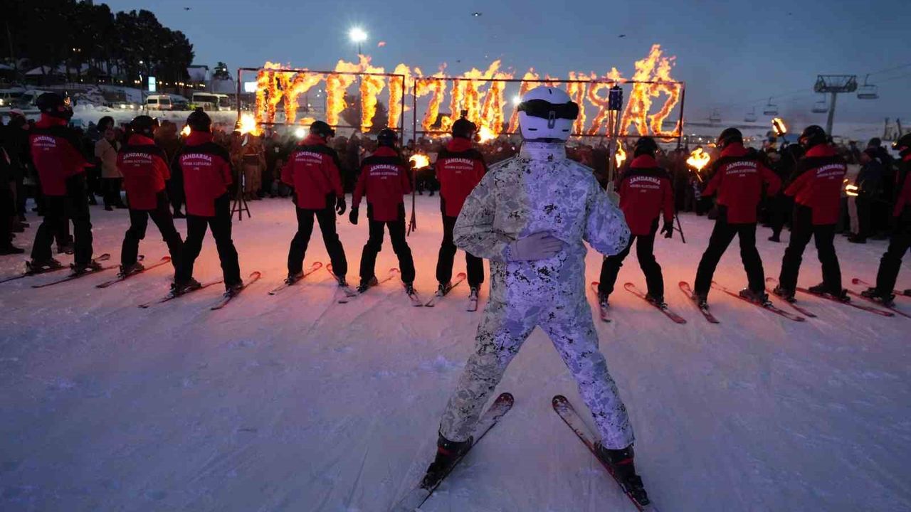 Kars'ta Sarıkamış Harekatı'nın 111. yılı dolayısıyla Jandarma Arama Kurtarma (JAK) timleri meşaleli kayak gösterisi yaptı.