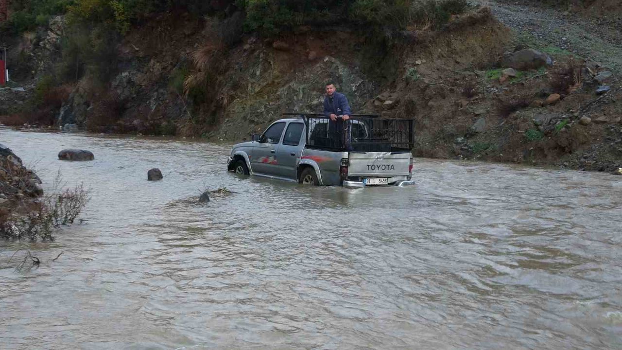 Etkili olan selle birlikte yolun suyla kaplandığını ifade ederek, ' Gördüğünüz bu yol yağmurdan sonra böyle oldu. Yağmur yüzünden kayalar devrildi. Ben de ahırı kontrol etmeye geldim. Aracım mahsur kaldı. Sağ olsun traktör beni kurtardı. Geçen sene öyle değildi bu sene çok yağmur yağmasıyla birlikte bu aralar böyle oldu' dedi.