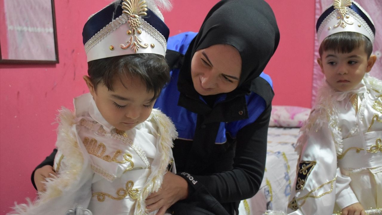 Proje kapsamında sünnet kıyafeti giydirilen ve evlerinde sünnet ettirilen Ömer ve kardeşi Ali'ye de dernek üyesi Ekrem Olğaç ve polisler tarafından Türk bayrağı ile çeşitli hediyeler verildi.