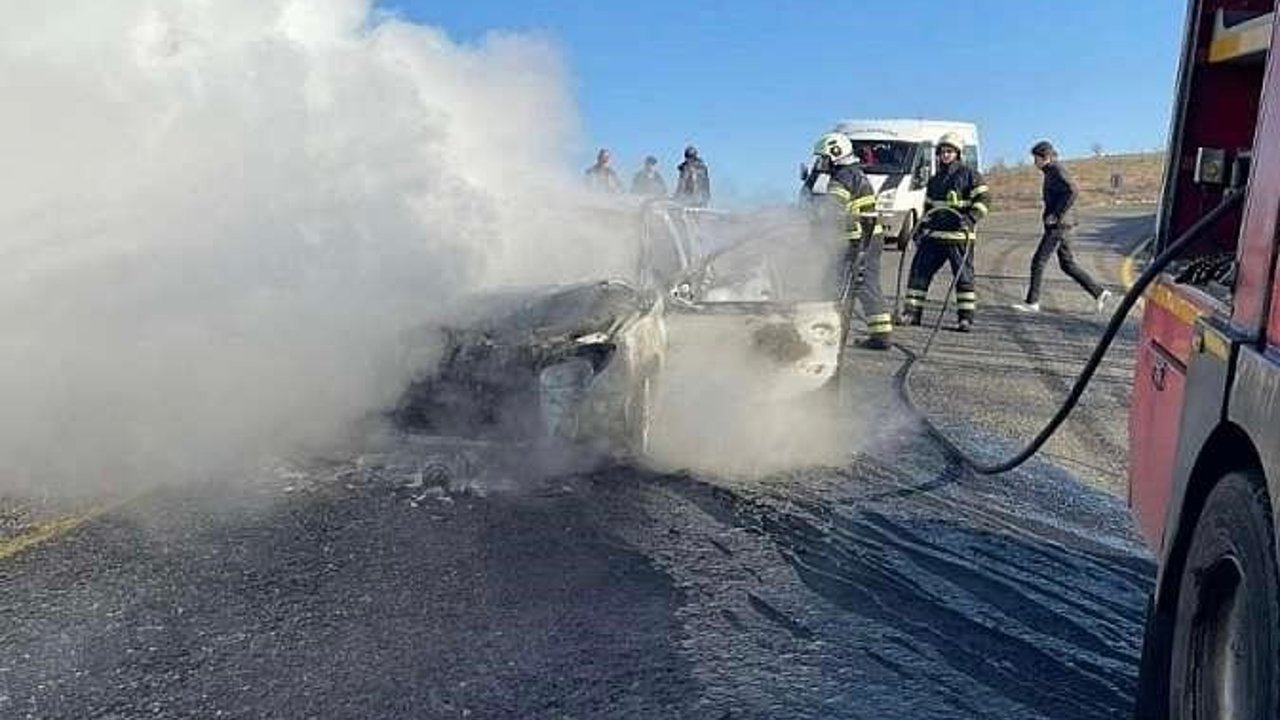 Edinilen bilgilere göre, merkeze bağlı Kalender köyü mevkisinde Mahmut Gürgen'e ait otomobil, seyir halindeyken aniden alev aldı. Kısa sürede büyüyen yangın aracı tamamen sardı. Sürücü, eşi ve iki çocuğu, alevler büyümeden önce araçtan çıkarak canlarını kurtardı.