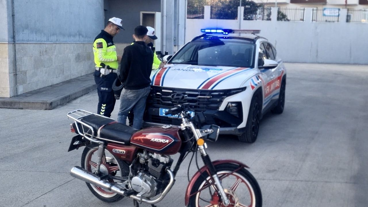 Motosiklet trafikten men edilirken, sürücü hakkında 'trafik güvenliğini tehlikeye sokmak' suçundan da adli işlem başlatıldı.