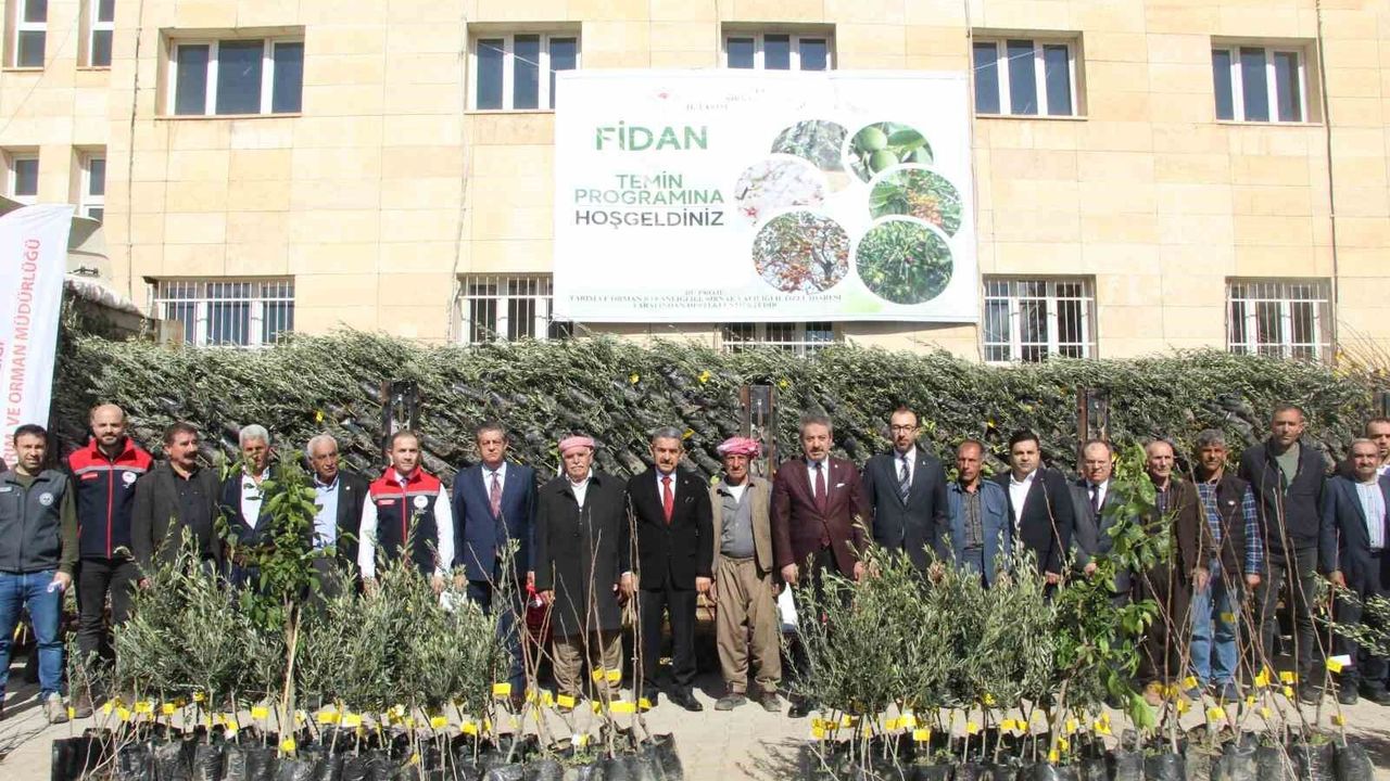 Şırnak'ta meyveciliği geliştirmek ve üretimi artırmak amacıyla 'Şırnak Üretiyor, Meyvecilik Gelişiyor' Projesi kapsamında düzenlenen fide dağıtım töreni, İl Tarım ve Orman Müdürlüğü bahçesinde gerçekleştirildi.
