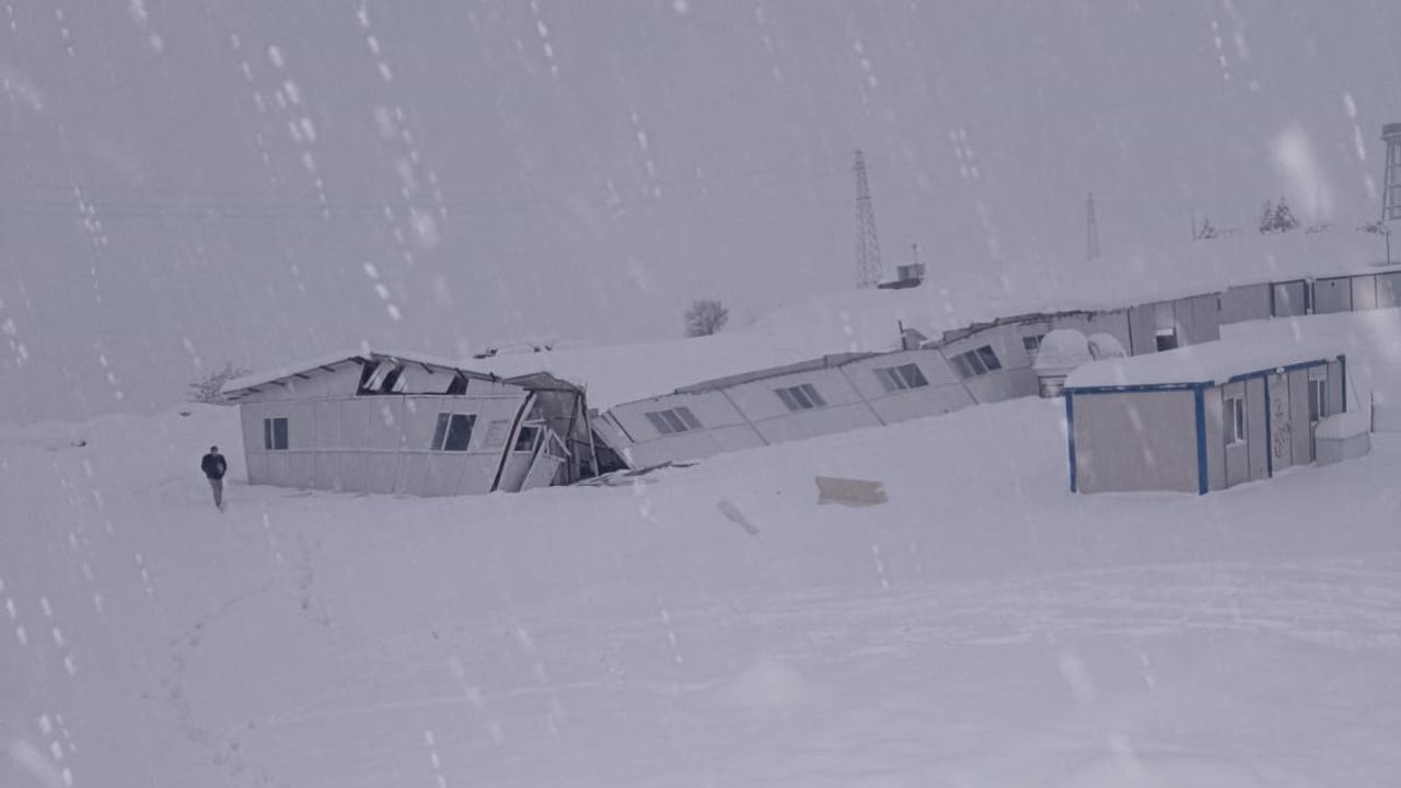 Şırnak'ta yapımı süren 500 yataklı bölge hastanesi şantiyesinde, yoğun kar yağışı ve şiddetli rüzgarın etkisiyle konteyner yemekhane çatısı çöktü. Olayda can kaybı ya da yaralanma yaşanmazken, yemekhane kullanılamaz hale geldi.