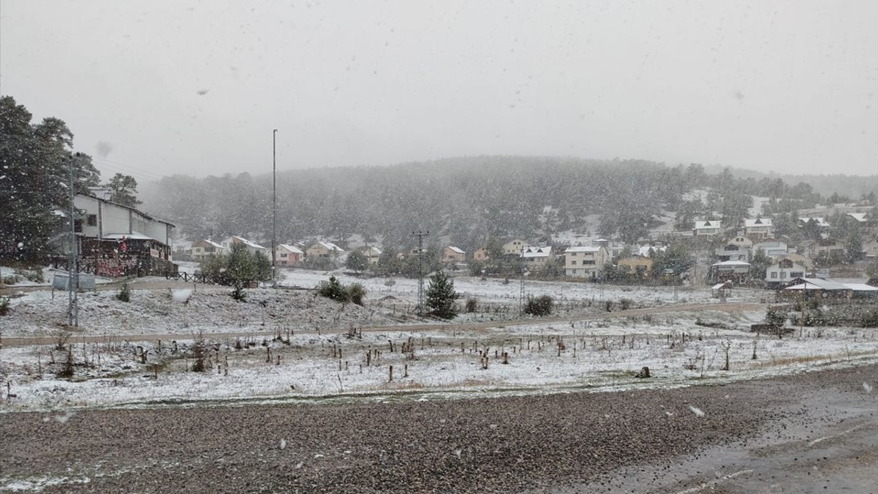 Özellikle ilkbaharda doğal güzellikleriyle görenleri etkileyen yayla, kar yağışıyla kısmen beyaz örtüyle kaplandı.