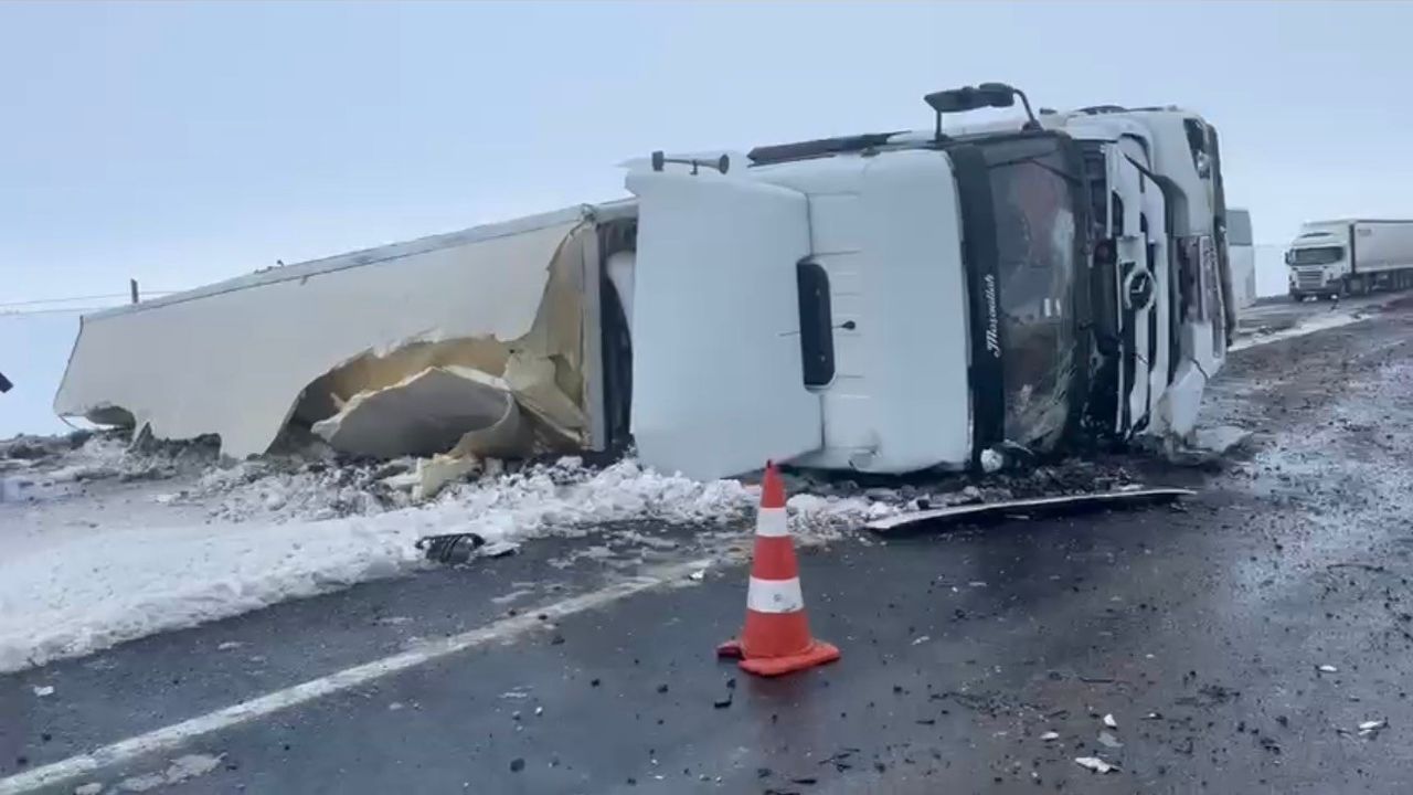 Ekipler bölgede güvenlik önlemleri alırken, devrilen tırın kaldırılması için çalışma başlatıldı.