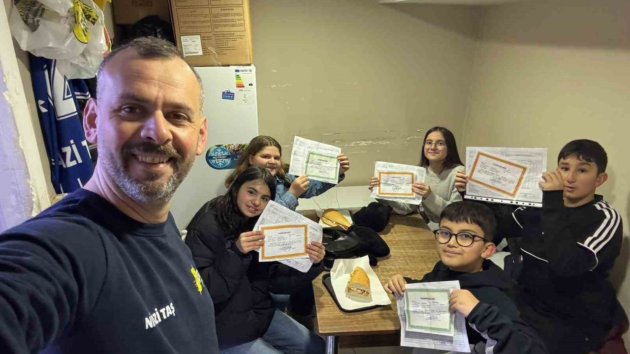 2025-2026 eğitim öğretim yılının birinci dönemi sona erdi. Sakarya'da 793 okulda eğitim gören 200 binden fazla öğrenci, karnelerini alarak yarıyıl tatiline çıktı. Bu çerçevede Pamukova ilçesinde döner işletmecisi olan Niyazi Taş, takdir ve teşekkür belgesi alan öğrencileri unutmadı. Dönerciye belgeleriyle gelen onlarca öğrenciye döner ikram edildi. Etkinlikte öğrenciler yoğun ilgi gösterdi. Öğrencilere her sene karne günü etkinliği yaptığını belirten Taş, 'Bu senede 2025-2026 eğitim öğretim yılının ilk dönemini bitirdik. Bizde başarılı öğrencileri ödüllendirmek adına her dönem yapmış olduğumuz gibi belge alan öğrencilerimizi belgeleriyle geleme şartıyla döner ve ayran ikramı olacak' dedi.