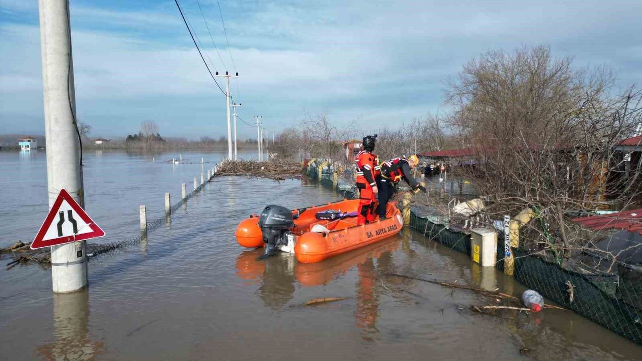 Debisinin yükselmesi sonucu Meriç Nehri sularının yatağından çıkarak taşkın sahasına yayılması sonrası, özellikle Bosna köyü civarında su altında kalan alanlarda mahsur kalan hayvanlar için arama kurtarma çalışmaları devam ediyor.