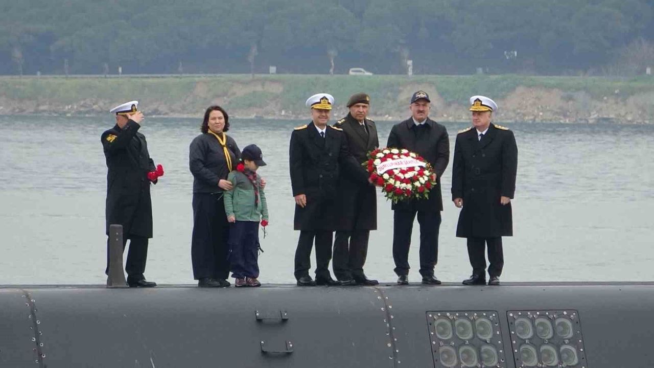 Çanakkale Boğazı'ndan geçiş yaparken 73 yıl önce Nara Burnu önlerinde İsveç şilebi 'Naboland' ile çarpışması sonucu batan 'TCG Dumlupınar' denizaltısında şehit olan 81 denizci için anma töreni düzenlendi. Şehit denizciler anısına denizaltının battığı yere çelenk bırakıldı.