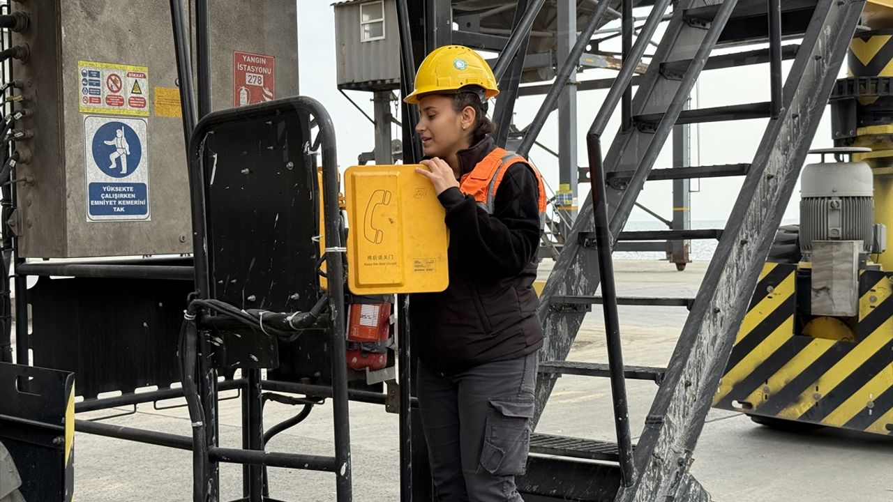 Her gün yaklaşık 22 metre yükseklikteki vinç kabinine çıkan genç operatör, kıyıya yanaşan gemilerin yükleme ve tahliye işlemlerinde görev alarak limanın ticaret trafiğine katkı sağlıyor.