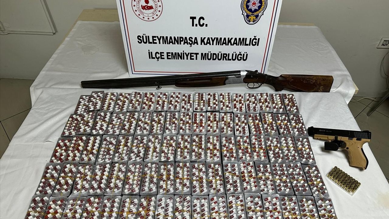 Şüphelilerin ev ve iş yerlerinde yapılan aramada, 5 bin 487 sentetik ecza hap, 1 kilogram sentetik uyuşturucu, ruhsatsız av tüfeği ve uyuşturucu ticaretinden elde edildiği değerlendirilen 14 bin 300 lira ele geçirildi.