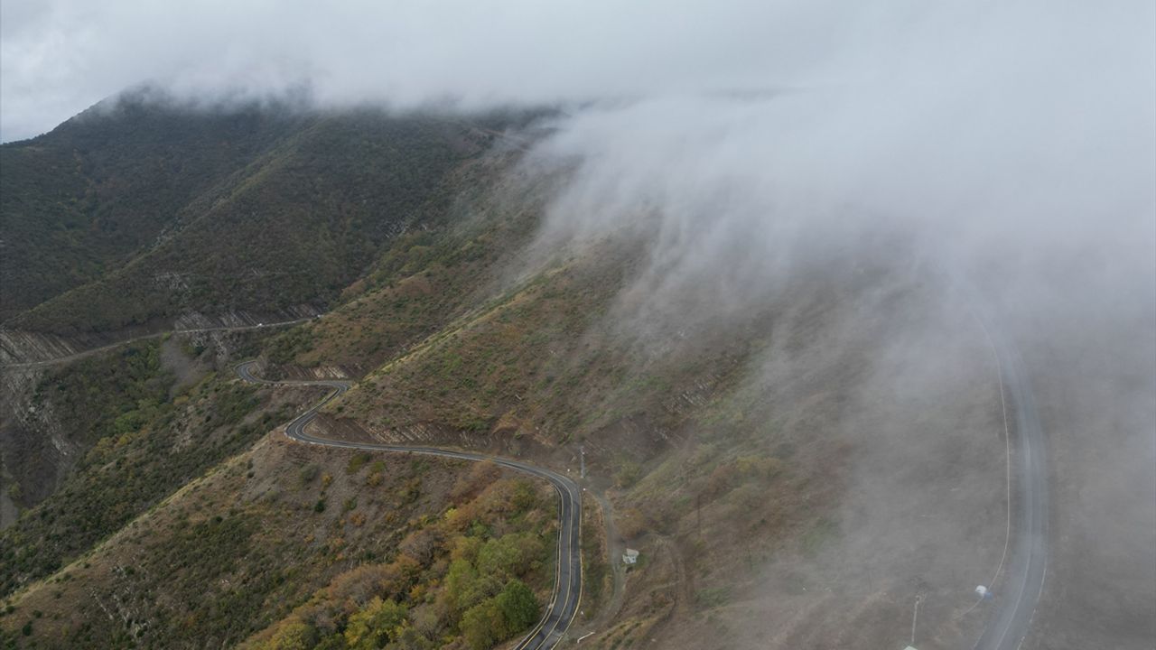 Görüntülerde, sisle kaplı yamaçlar ve köy yolları kartpostallık manzaralar oluşturdu.