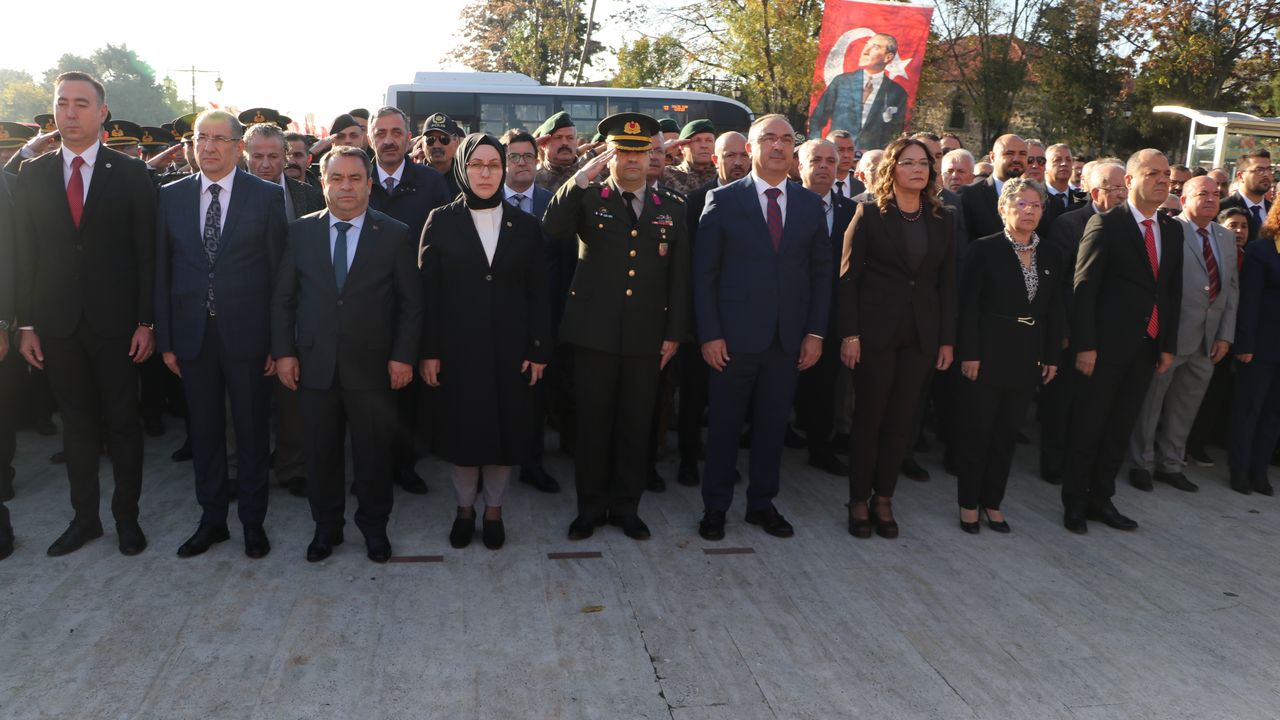 Valilik binası önündeki törende, Vali Recep Soytürk, Garnizon Komutanlığı Kurmay Başkan Yarbay Emre Kaya ve Büyükşehir Belediye Başkanı Candan Yüceer, Atatürk Anıtı'na çelenk sundu.