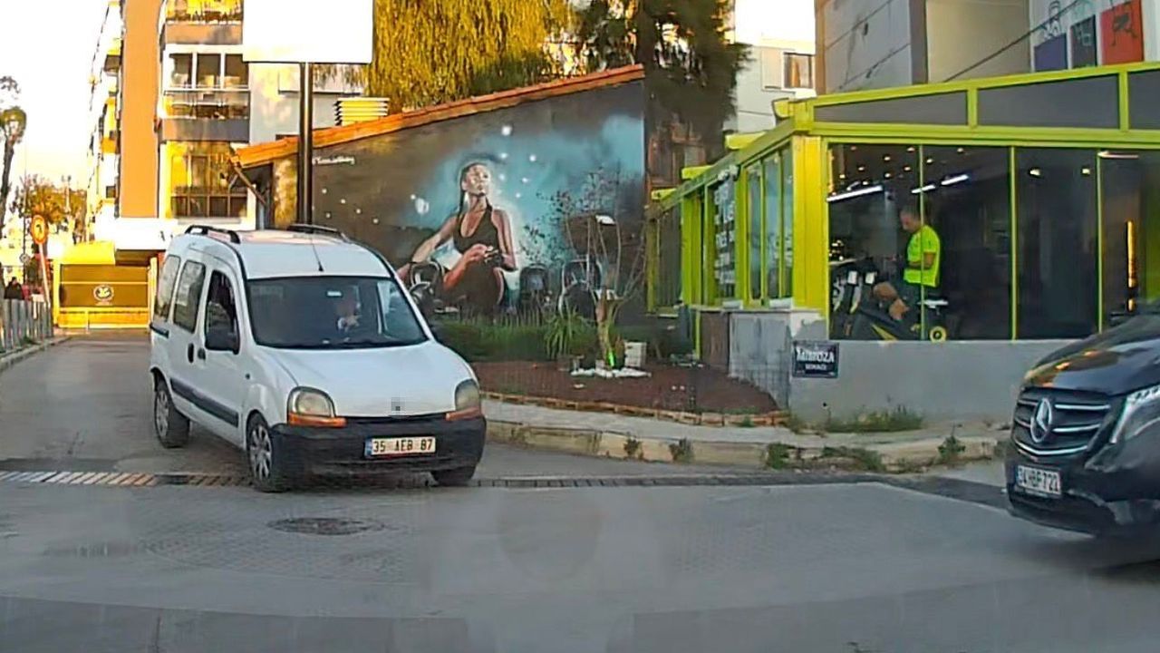 Olay, akşam saat 19.10 sıralarında Balçova ilçesi Korutürk Mahallesi'nde meydana geldi. Zambak Sokak'tan çıkan 35 AEB 87 plakalı panelvan aracın sürücüsü, sola dönüş yasağı bulunmasına rağmen kural ihlali yaparak, Mithatpaşa Caddesi'ndeki tek yönlü yola ters yönden girdi. Sürücünün trafikteki bu tehlikeli ilerleyişi anbean başka bir otomobilin araç kamerasına yansıdı. Görüntülerde ters yönden gelen sürücünün park yeri kapabilmek için karşı yönden gelen otomobilin üzerine direksiyon kırdığı ve trafik güvenliğini tehlikeye attığı anlar yer aldı.