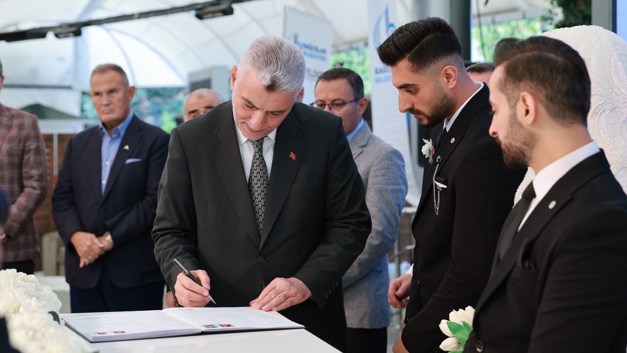 İSTANBUL (AA) - Ticaret Bakanı Ömer Bolat, Bağcılar Belediyesince bu sene 30'uncusu düzenlenen toplu düğün şöleninde 8 çifte nikah şahitliği yaptı.