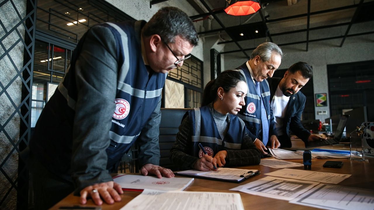 Bursa Ticaret İl Müdürü İsmail Aslanlar ve beraberindeki ekip tarafından 'Perakende Ticaretin Düzenlenmesi Hakkında Kanun' kapsamında gerçekleştirilen denetimlerde, emlak sektöründe faaliyet gösteren işletmelerde 'Taşınmaz Ticareti Yetki Belgesi' ve işletmenin adresinin doğruluğu kontrol ediliyor.