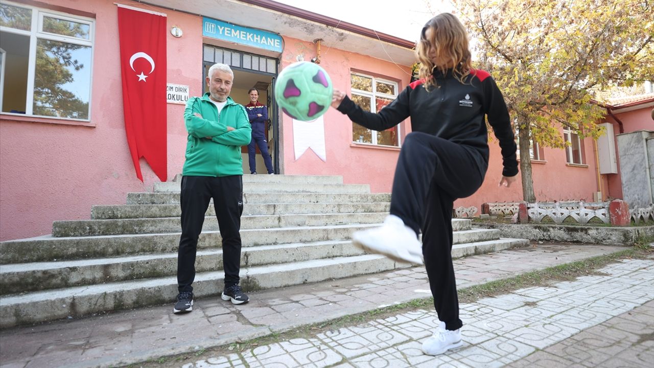 Taşımalı sistemle 8 köyden gelen kız öğrencilerin okula olan ilgilerini artırmayı planlayan Akkuş, öğrencilerini futsalla tanıştırdı.