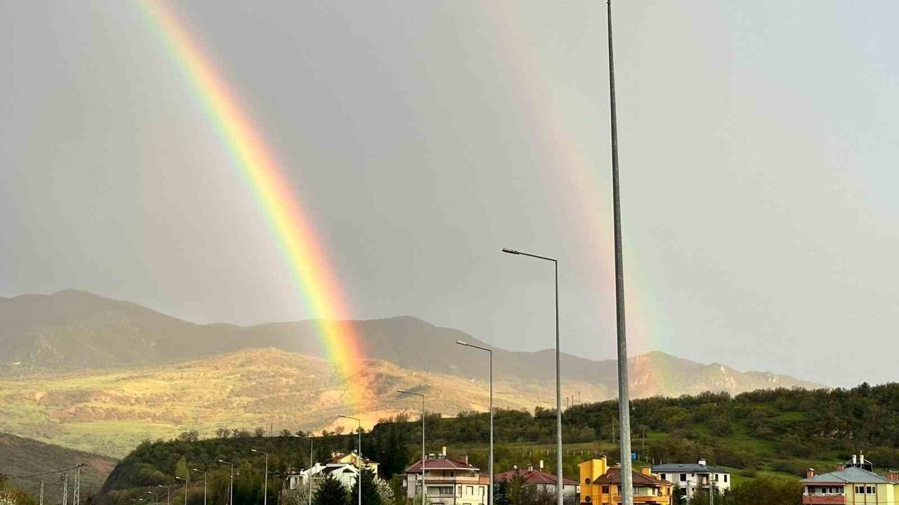 Tunceli'de etkili olan sağanak yağışın ardından gökyüzünde oluşan gökkuşağı, kentte görsel bir şölen sundu.