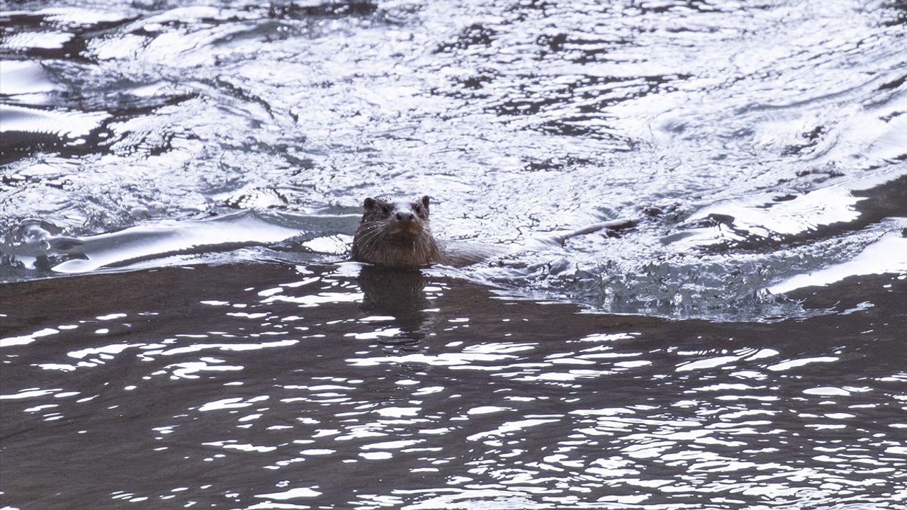 Bir süre başını su yüzeyine çıkararak çevreyi izleyen su samuru, daha sonra kaya oyuğuna girerek gözden kayboldu.