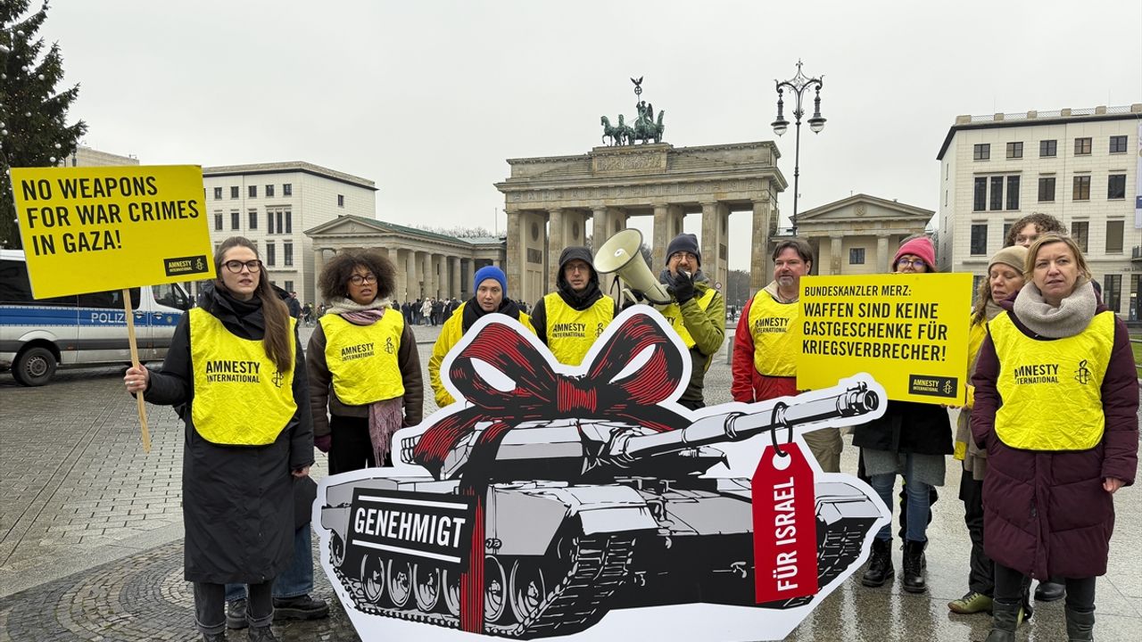 BERLİN (AA) - Uluslararası Af Örgütü, başkent Berlin'de Almanya Başbakanı Friedrich Merz'in hafta sonu İsrail'e yapacağı ziyareti protesto etti.