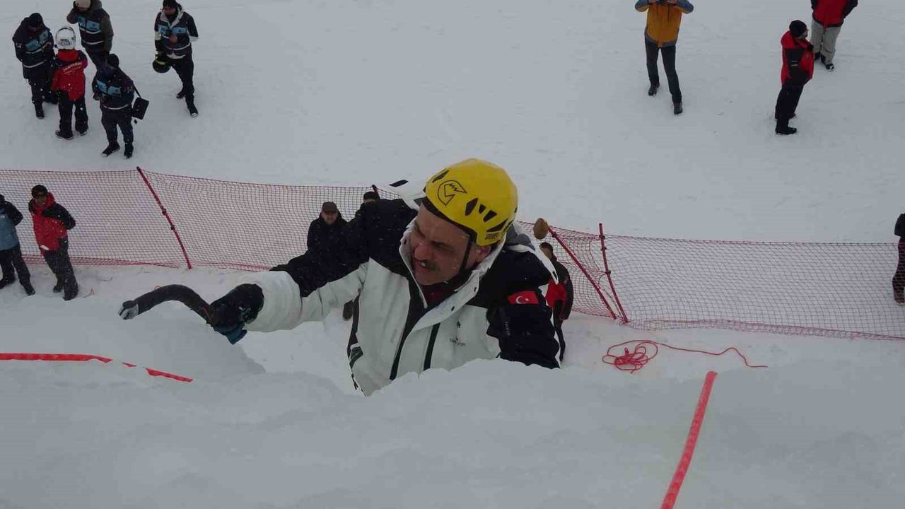 Erzurum Valisi Mustafa Çiftçi, Palandöken Kayak Merkezi'nde yapılan yapay buz duvarına tırmandı.