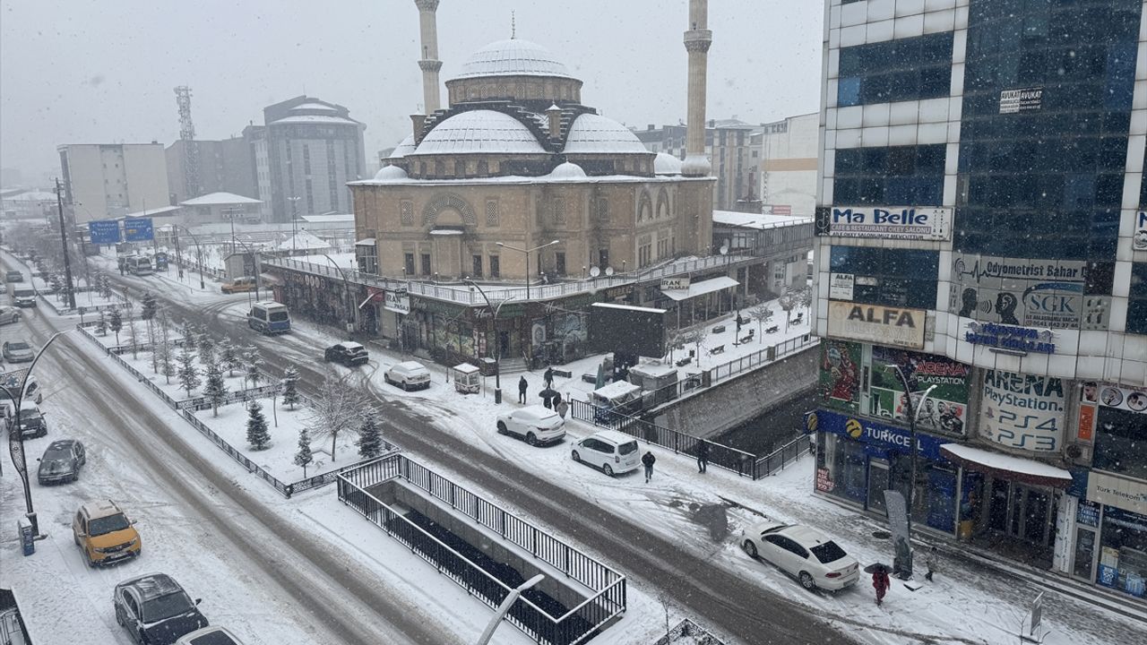 İpekyolu Caddesi'nde sürücüler, kar nedeniyle güçlükle ilerleyebildi.