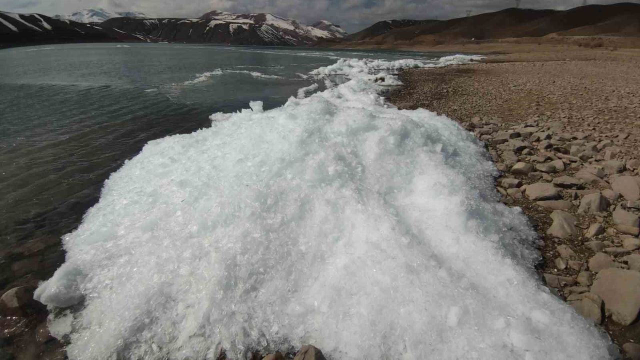 Sibirya soğuklarının hakim olduğu Van'da Zernek Barajı'ndaki dalgalar donarak kristalleşti. Ortaya çıkan manzara görsel şölen sundu.