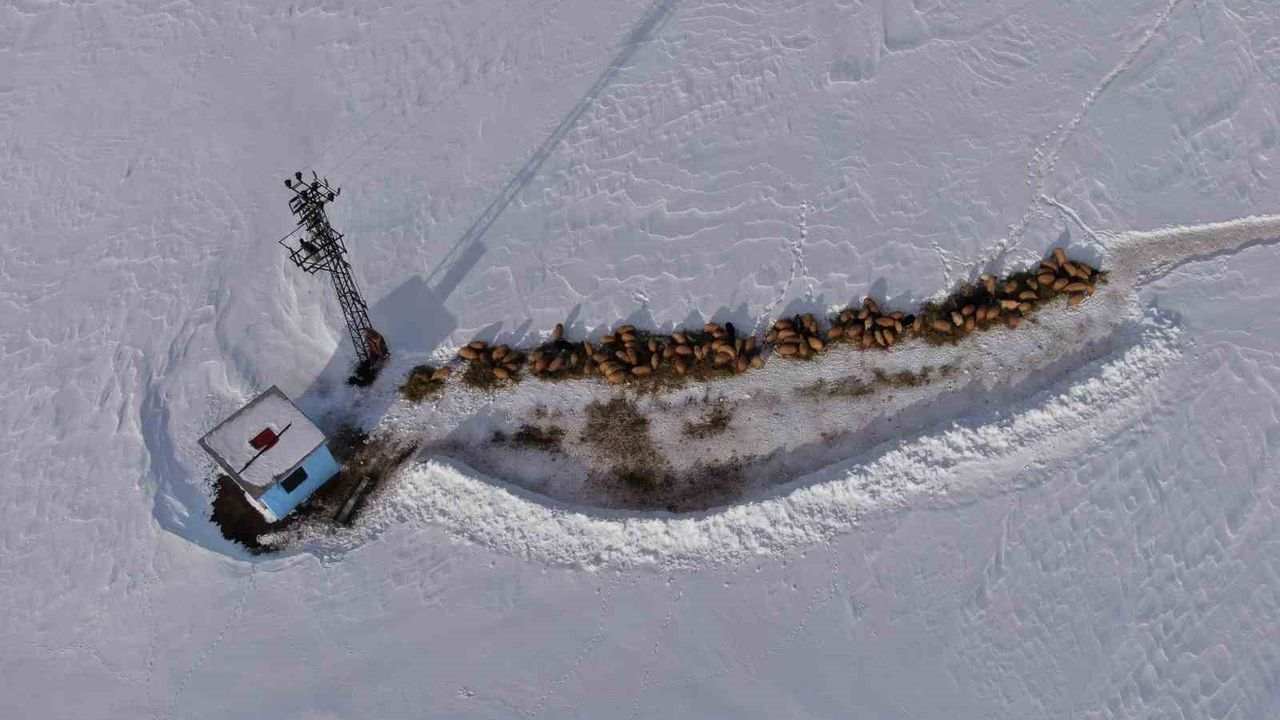 Kentte geceleri eksi 15 dereceye kadar düşen hava sıcaklığı hayatı olumsuz yönde etkiliyor. Çatak ilçesinde besiciler çetin kış şartları ve bölgenin zorlu coğrafyasına rağmen hayvanlarının bakımını ihmal etmiyor. Tek geçim kaynakları hayvanları için dondurucu soğukların etkili olduğu kırsalda tüm zorluklara göğüs geriyor. Yazın yaylalarda otlattıkları hayvanlarına kış boyunca ağıllarda bakan besiciler, gün içerisinde çıkardıkları hayvanlarına kar üzerinde yem veriyor. İlçeye 30 kilometre uzaklıktaki Teknecik Mahallesi'nde günün ilk ışıklarıyla işe koyulan besiciler, sırtlarında ve kızakla taşıdıkları otları, karın üzerine sererek günde 2 kez hayvanlarını besliyor, akşam saatlerinde ise yeniden ağıla götürüyor.