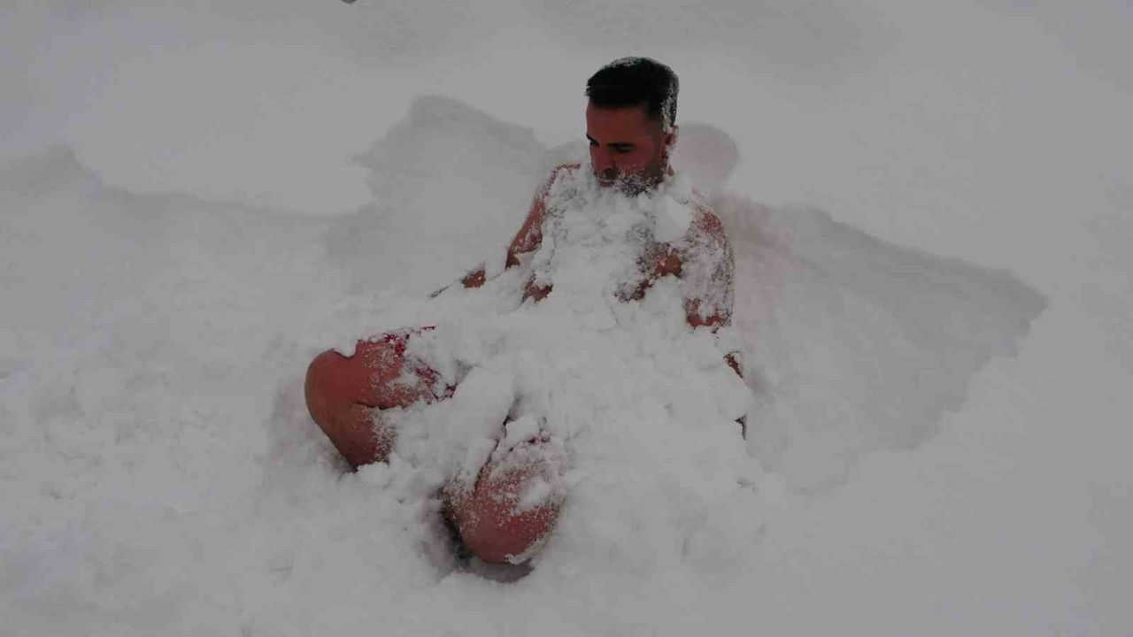 Van genelinde son günlerde etkili olan yoğun kar yağışı hayatı olumsuz etkilerken, bazı vatandaşlar için bu durum bir eğlence ve sağlık ritüeline dönüştü. Kent merkezinde kar kalınlığının 20 santimetreyi aştığı sabah saatlerinde, soğuğa dayanıklılığıyla bilinen bir bölge sakini, üzerindeki kıyafetleri çıkararak kendisini beyaz örtünün kollarına bıraktı. Daha önce Van Gölü'nün soğuk sularında yüzen özel eğitim öğretmeni Muhammed Turken, 'Van'da görev yapıyorum. Özel eğitim öğretmeniyim. Önceki yıllarda ve geçen haftalarda Van Gölü'nde yüzdüm. Akan suda yüzdüm. Uzun zamandır bunu yapmak istiyordum. Daha önce yapmamıştım. Rusların, İskandinav ülkelerin bunu yaptığını gördüm ve vücuda sağlığını araştırdım. Çok sağlıklı bir şey olduğunu düşündüğüm için bunu yaptım. Bu ilkti ama kesinlikle son olmayacak. Vücudum şu an muazzam derecede kendini dinç hissediyor. Yapmak isteyen varsa da ileriki zamanlarda birlikte yapabiliriz. Herkesi bu etkinliklere bekliyorum' dedi.