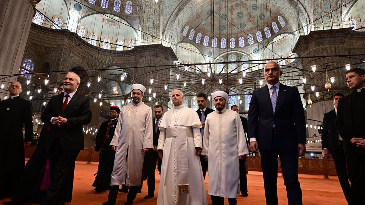 Türkiye ziyareti kapsamında İstanbul'da bulunan Papa 14. Leo ve beraberindeki heyet, Sultanahmet Camisi'ni gezdi.