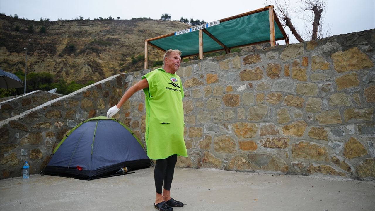 'Alanya çok uzak olduğu için İstanbul'dan yüzmeye başladım. Marmara'da yüzmeye karar verdim çünkü çok daha kolay olacağını düşündüm. Burası bana tatil gibi gelecekti ama rüzgar, büyük dalgalar ve başka sıkıntılar oldu. Buradan Stockholm'e 18 bin kilometre mesafe var. Bir yılda 1500 kilometre yüzüyorum. Buradan Stockholm'e yüzmem 2036'yı bulur. Ben normal bir yaşantı yürütemem. Bir apartmanda yaşayamam. 2021'den beri yapıyorum bunu ve hayatımın bir parçası oldu. 4 yıldan beri çadırda yaşıyorum. Kendimi normal hayata dönecek birisi olarak görmüyorum. Çadırım benim evim.'