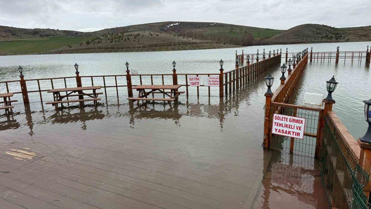 Saraykent ilçesinde bulunan Millet Bahçesi Göleti'nde son günlerde etkili olan yağışların ardından su seviyesi yükseldi. Yükselen su seviyesiyle birlikte iskele sular altında kaldı. Park içerisindeki oturma alanları, iskelenin göletle buluştuğu alan yaklaşık 20 santimi bulan suyla doldu. Yağışlar vatandaşları bir yandan sevindirirken, bir yandan da tedirgin etti.