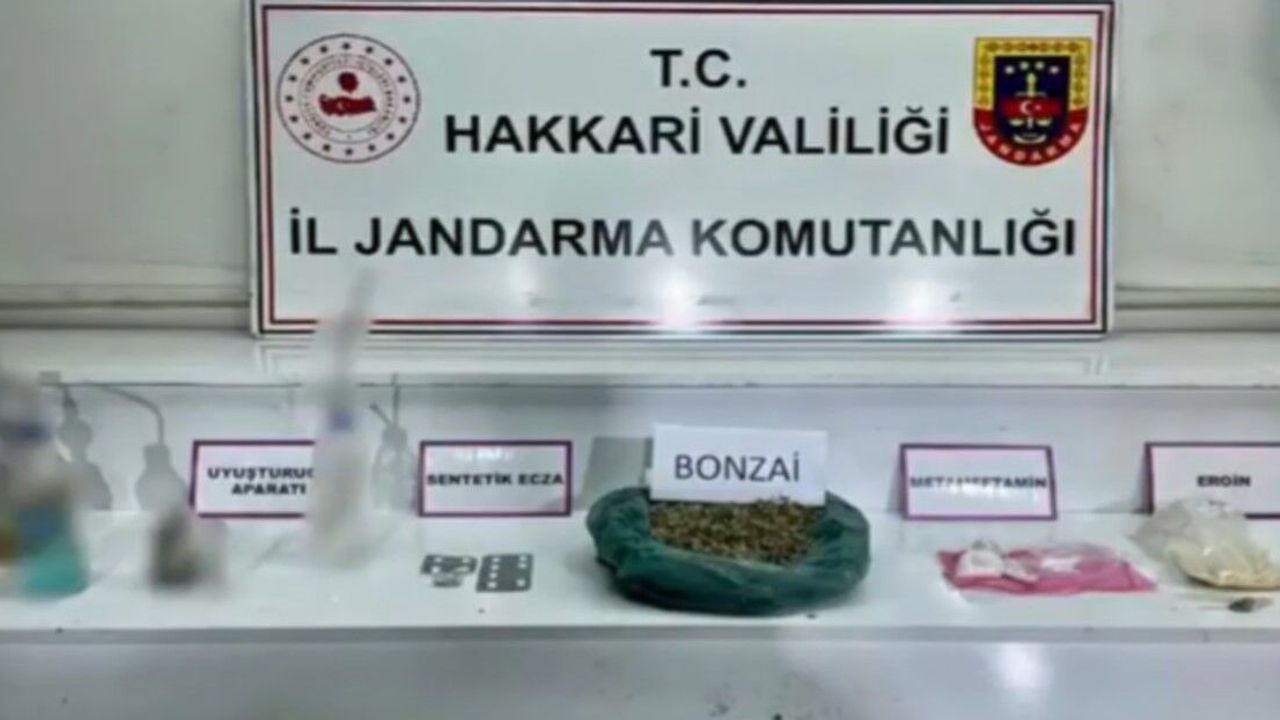 Yüksekova'ya bağlı Dize Mahallesi'nde A.Ö.'ye ait ikamette yapılan aramada; 300 gram sentetik kannabinoid (bonzai), 130 gram eroin, 30 gram metamfetamin, 12 adet suboxone ile 4 adet kullanma aparatı ele geçirildi. Operasyon kapsamında A.D., N.A., L.T., M.K., H.D. ve A.T. isimli şüpheliler gözaltına alındı. Jandarmadaki işlemlerinin ardından adliyeye sevk edilen şüpheliler, çıkarıldıkları mahkemece tutuklanarak Hakkari Kapalı Ceza İnfaz Kurumuna gönderildi.