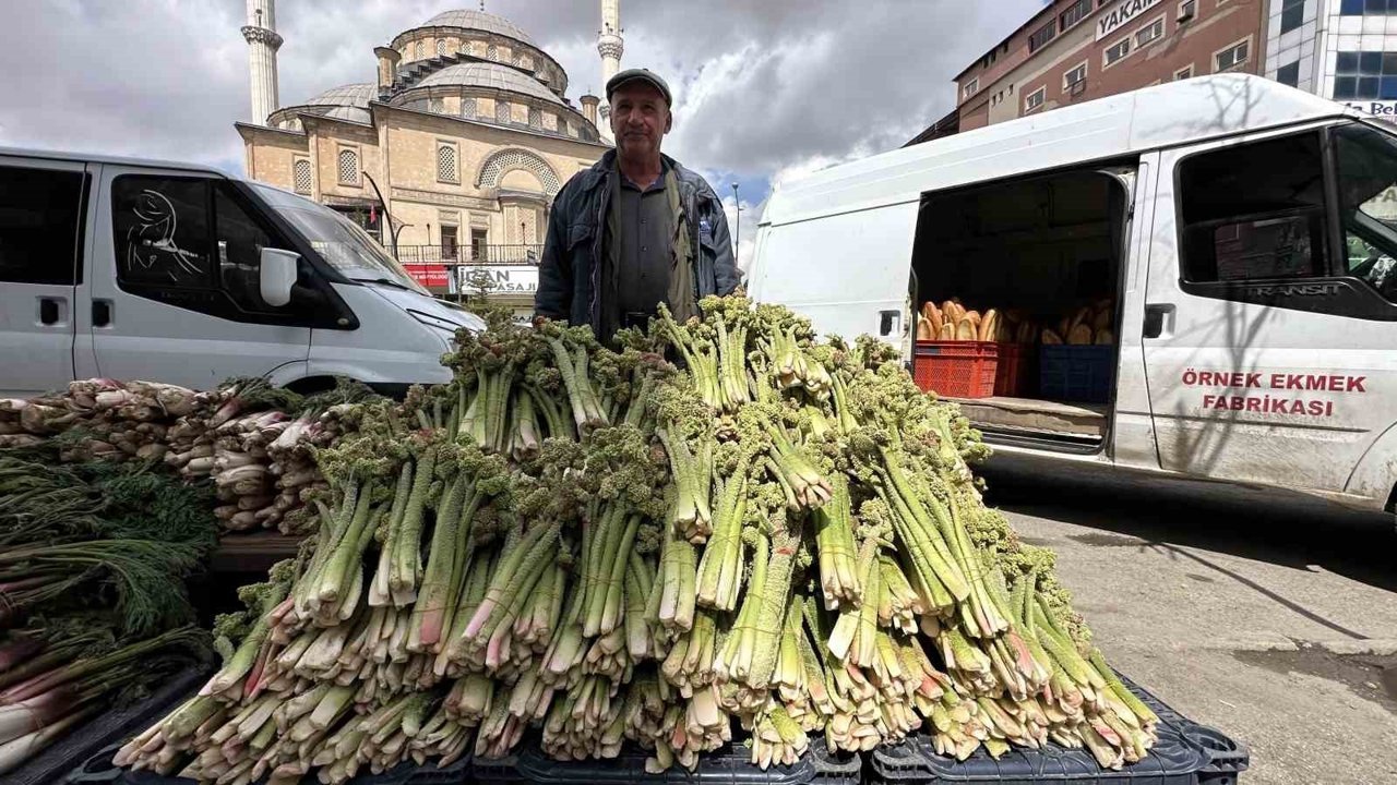 Hakkari ve ilçelerinde baharın müjdeleyicisi olarak bilinen, yüksek rakımlı dağlarda doğal olarak yetişen ve halk arasında 'yayla muzu' olarak adlandırılan uçkun (revas), pazar tezgahlarındaki yerini alırken, sezonun ilk ürünleri ise destesi 150 liradan satılıyor.